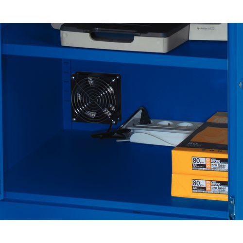 Mit einem Gebläse zur Vermeidung einer Überhitzung.