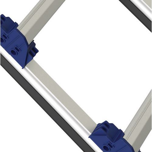 Sistema di bloccaggio: collegamenti di sezioni di scala imperdibili, bloccaggio visibile a 360°. Dimensioni piolo: 35 x 22 mm. Sezione verticale: 41 x 26 mm. Prodotto fabbricato in Francia.
