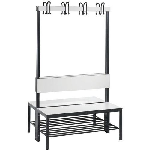 Doppelseitige Holzbank mit Rückenlehne und Kleiderhaken Basic Plus - mit und ohne Schuhablage - CP Doppelseitige Holzbank mit Rückenlehne und Kleiderhaken Basic Plus - mit und ohne Schuhablage - CP