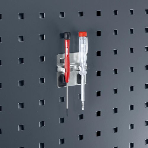 Hängen Sie Ihre Werkzeuge ganz einfach auf. 6 mm dickes, robustes Modell. Klemme im Handumdrehen dank der Sicherheitsclips aus Kunststoff befestigen.