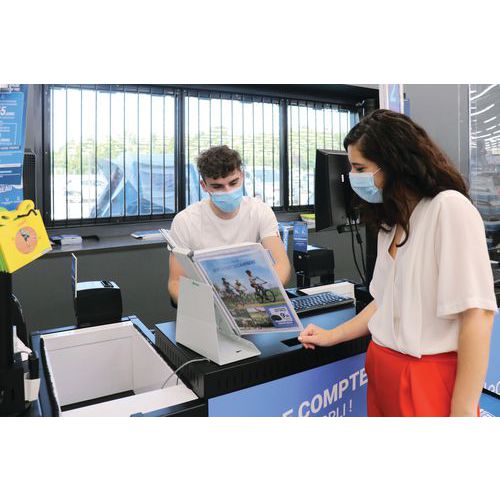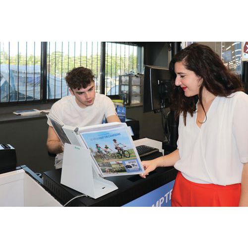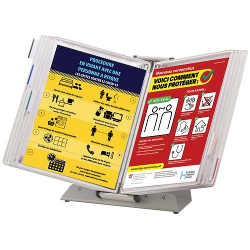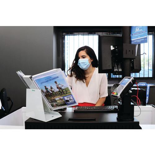 Drehpult mit antimikrobiellen Schutzhüllen Sterifold – Tarifold, Haltermaterial: Métal, Farbe: Weiß