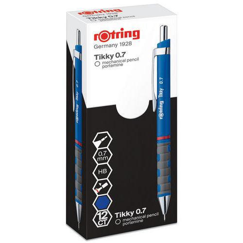 | Produktname | Druckbleistift Tikky HB 0,7 mm - blaues Gehäuse - rOtring®, Korpus Farbe: Blau, Spitze Ø: 0.7 mm |