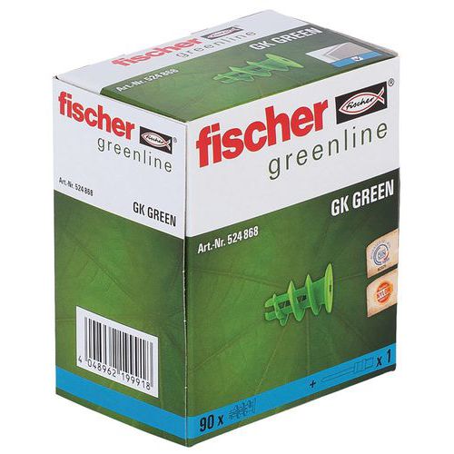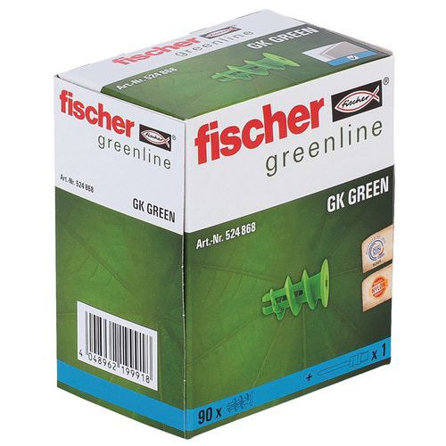 | Produktname | Dübel GK Green, Steckerlänge: 22 mm, Werkstoff: Nylon, Typ Stütz: Putz, Recycelbare Verpackung: Ja - 100% |
