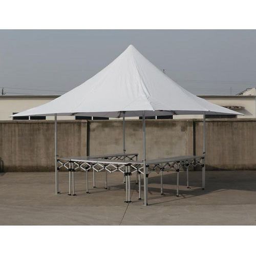 - Stabile Theke mit rohrförmigem, sechseckigem Fußgestell und Fußplatten aus verzinktem Stahl