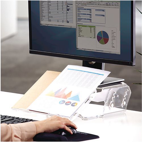 | Produktname | Einstellbarer Monitor- und Dokumentenhalter Clarity™ - Fellowes, Max. Belastung: 15 kg, Farbe: Transparent |