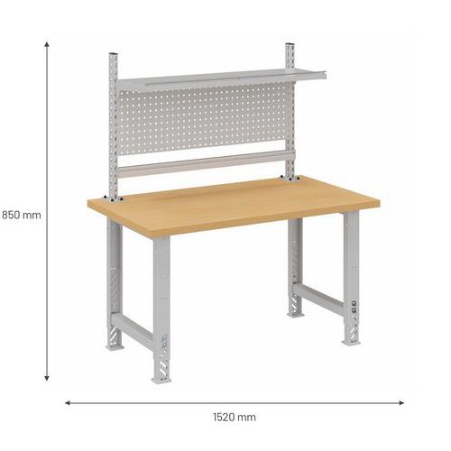 | Produktname | Einstellbarer Montageplatz mit Regalboden, 500 kg - Manutan Expert, Max. Belastung: 500 kg, Höhe: 850 mm |