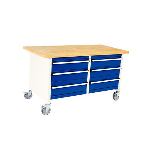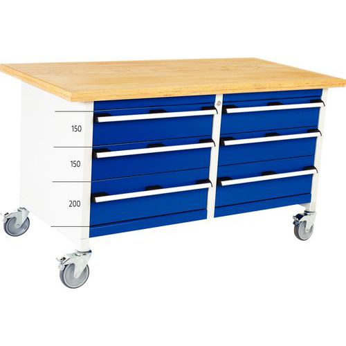 | Produktname | Einteilige Werkbank auf Rollen mit Schubladen, Gesamthöhe: 840 mm, Anzahl Schubladen: 6 |