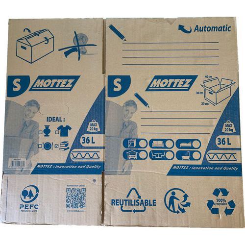 | Produktname | Einwelliger Karton - 36 L, Innere Höhe: 30 cm, Innere Breite: 30 cm, Innere Länge: 40 cm, Wellenart: 1-wellig |