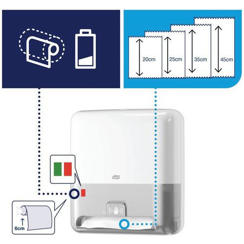 | Produktname | Elektrischer Papiertuchspender Tork Matic Sensor – schwarz oder weiß, Farbe: Weiß, Höhe: 400 mm |