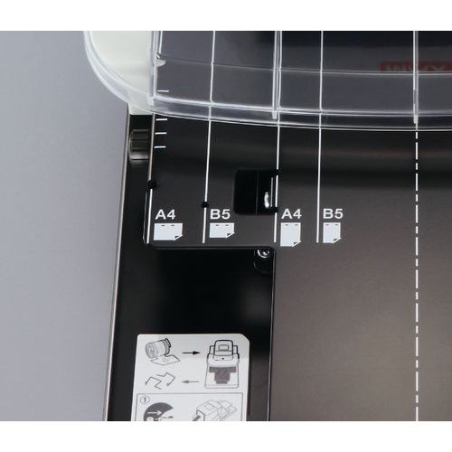 Der Hefter verfügt über eine dreifarbige LED, die anzeigt, wann das Klammernmagazin ausgewechselt oder der Verschnittbehälter geleert werden muss oder wann neue Heftklammern eingelegt werden müssen.