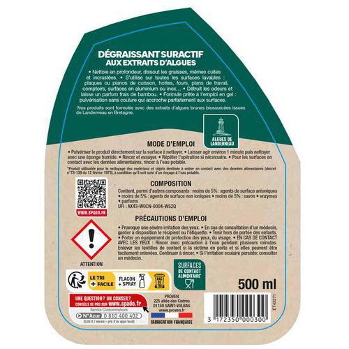 | Produktname | Entfettungsmittel mit Algenextrakten, 500 ml - Spado, Desinfektionsmittel: nein, Verpackung: Sprühen |