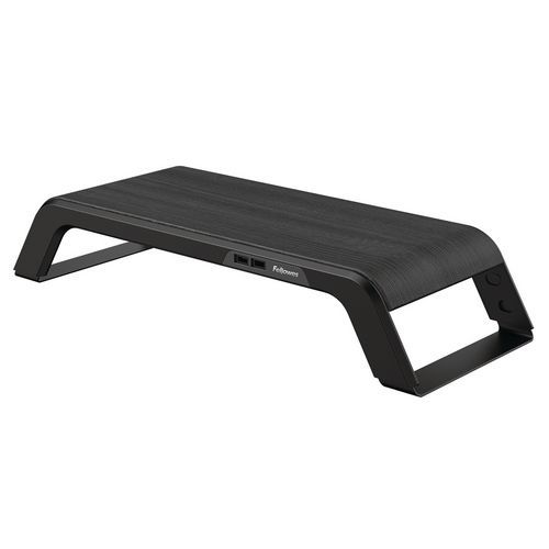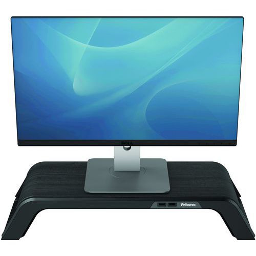 Elegante und minimalistische Monitorhalterung mit USB-Anschluss.