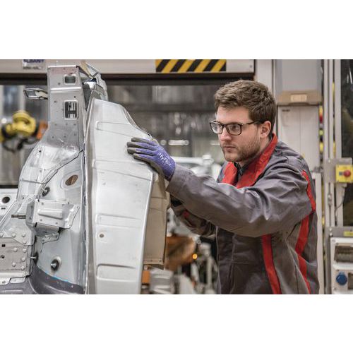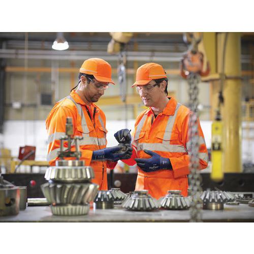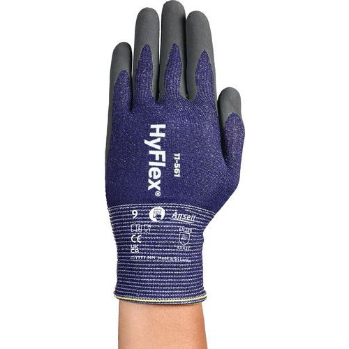 Die Beschichtung des HyFlex 11-561 auf der Handflächeninnenseite verbessert die Griffsicherheit, während der verstärkte Daumenansatz gegen schnelle Abnutzung schützt
