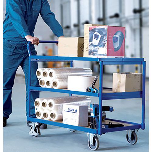 Ergonomischer Wagen mit 3 Holzplatten - Vertikale Stange - Tragkraft 250 kg