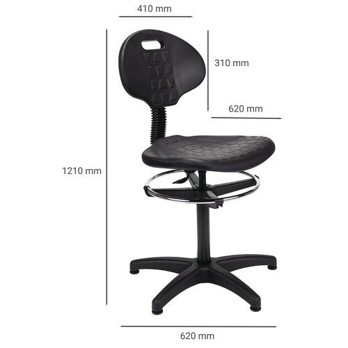 | Produktname | Ergonomischer Werkstattstuhl - Hoch - Manutan Expert, Mit Armlehnen: nein, Typ Fuss: Bodengleiter |