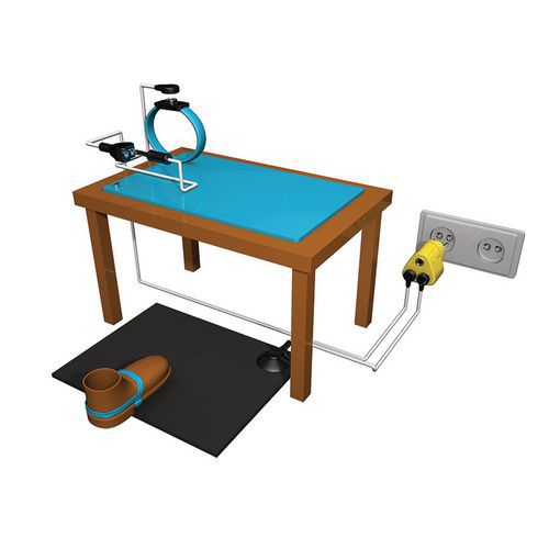 Das Kabel mit 4,5 m Länge hat zwei Verbindungspunkte für die an dem Armband angeschlossenen Kabel und verbindet das Armband und die antistatische Matte mit der Masse
