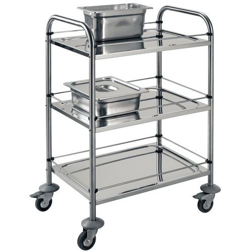 | Produktname | Etagenwagen aus Edelstahl, Max. Belastung: 60 kg, Gesamthöhe: 940 mm, Gesamtbreite: 470 mm |