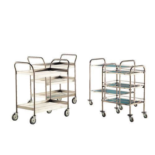 | Produktname | Etagenwagen aus Edelstahl mit Reling, Max. Belastung: 60 kg, Gesamthöhe: 940 mm, Gesamtbreite: 470 mm |