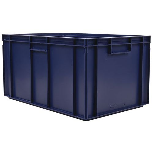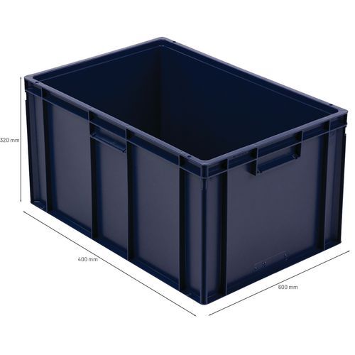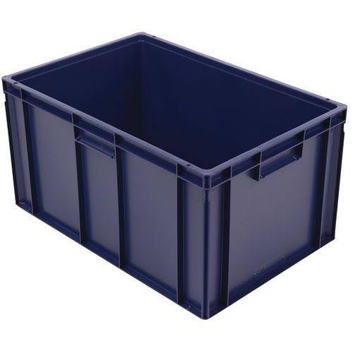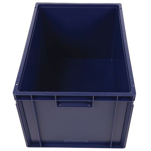Euronorm-Behälter mit hoher Stabilität beim Stapeln. Geschlossene Griffe: einfache Handhabung, keine Verringerung der Kapazität. Beständig gegen Öle, Fette und zahlreiche Chemikalien