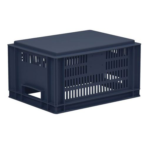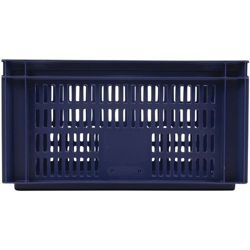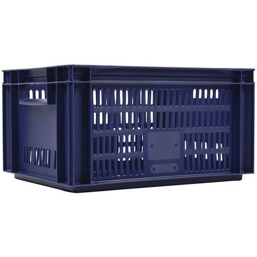 Blauer Euronormbehälter, hohe Stabilität beim Stapeln Garantiert gute Belüftung dank durchbrochener Wände Einfache Handhabung dank großen Grifföffnungen Beständig gegen Öle, Fette und zahlreiche Chemikalien