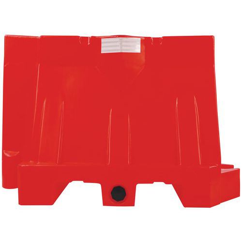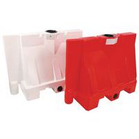 In Rotationsschmelzverfahren hergestellt, 100% PEHD Reflektierende Bänder auf beiden Seiten für bessere Sichtbarkeit Mit Wasser oder Sand beschwerbar Öffnung am oberen Teil zur Befüllung und Öffnung am unteren Teil zur Entleerung Staplertaschen für den Transport Schlitze am oberen Teil zur Umreifung bei der Beförderung und bei der Lagerung Verstärktes Design für eine intensive Nutzung Lichtbalken, blendfrei bei Gegenverkehr