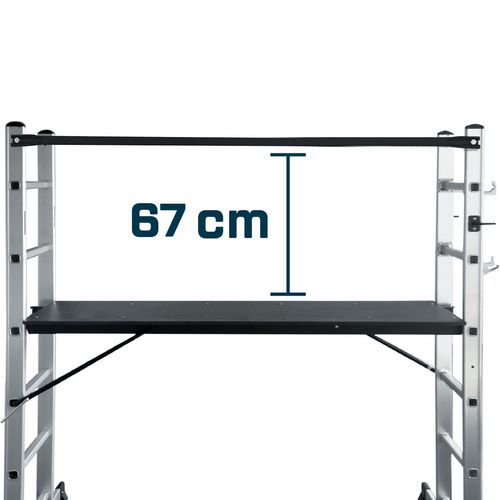 Das Gerüst Multi Brico ist äußerst vielseitig: Es vereint Gerüst und Leiter in einem Produkt und kann auf ebenem Boden oder bei Höhenunterschieden eingesetzt werden Als Gerüst lässt es sich schnell aufbauen (in weniger als 6 Minuten) Genießen Sie optimalen Komfort mit einem rutschfesten XL-Holzboden Zu Ihrer Sicherheit ist es mit einem höhenverstellbaren Geländer und Stabilisierungsfüßen mit rutschfesten Kappen ausgestattet Schnelle Montage in weniger als 6 Minuten Komfortabel: rutschfester XL-Holzboden mit den Maßen 147,5 x 40,5 cm Stabil: Stabilisierungsfüße mit rutschfesten Kappen Widerstandsfähig: Befestigung der Sprossen durch nicht entfernbare und unverformbare Crimpverbindung Aus Aluminium/Stahl