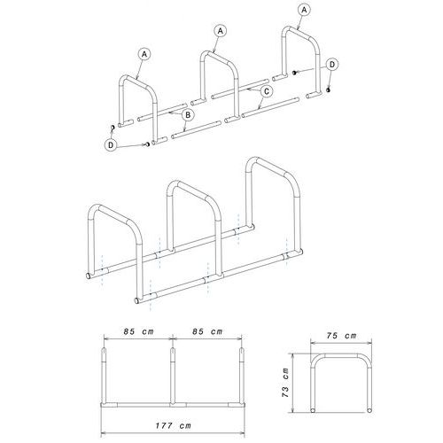 | Produktname | Fahrradständer Bügel - 6 bis 10 Stellplätze - Manutan Expert, Gesamtlänge: 1770 mm, Anzahl Plätze: 6 |