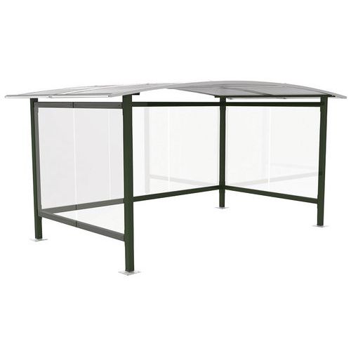 - Unterstand für Zweiräder mit gewölbtem Dach.