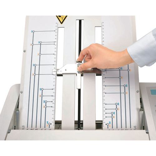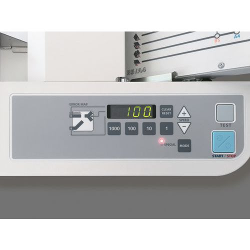 | Für Formate | B7 bis A3Modus „Standard“: 40 bis 180 A4-Blätter pro Minute Modus „Lärmreduzierung“: 60 A4-Blätter pro Minute Modus „dickes Papier“: 60 A4-Blätter pro MinuteModus „schnell“: 240 A4-Blätter pro Minute (für einfache Falzung) |