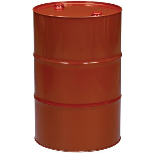 Stahlfass mit dreifacher Sicherheitsfalz und verschließbaren Spundlöchern. Innenwand unbehandelt: mit Motor- und Hydraulikölen kompatibel.