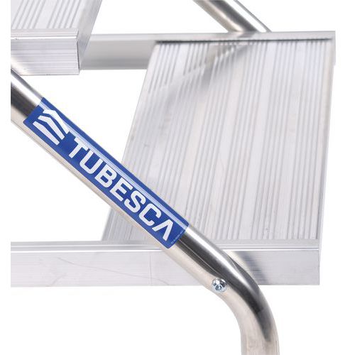 - Die großen, geriffelten Stufen sind rutschfest und austauschbar.