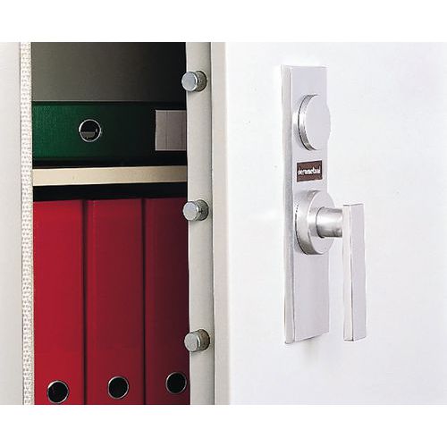Feuer- und einbruchsicherer Archivschrank. Geeignet für die Aufbewahrung Ihrer Ordner. Die Fachböden sind leicht höhenverstellbar. Der Schrank lässt sich mit dem Doppelbartschlüssel sicher verschließen. Bestellen Sie separat ein Hängemappensystem für die Aufbewahrung Ihrer Dokumente dazu.
