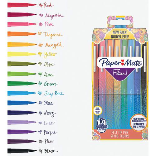 | Produktname | Filzstift Flair Original, 16er-Pack, Papermate, Tinte Farbe: Gemischt, Stückzahl: 16 |