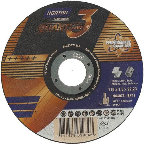 | Produktname | Flache Trennscheibe QUANTUM 3-METAL - Norton, Bohrung Durchmesser Schleifstein: 22.23 mm |