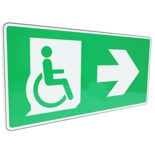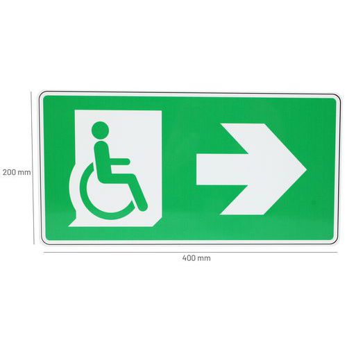 | Produktname | Hinweisschild - Rettungsweg für Behinderte rechts - Aluminium - Manutan Expert, Selbstklebend: nein |