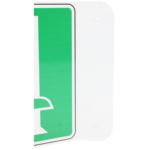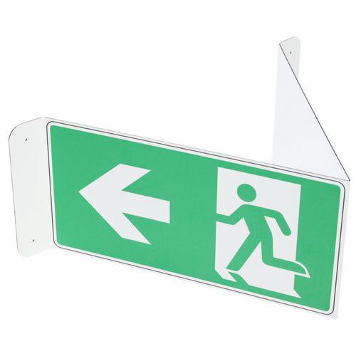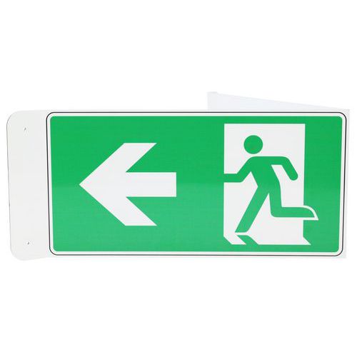 - Schild mit Piktogramm zur Kennzeichnung der Richtung, in der sich der Notausgang befindet