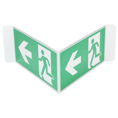 Fluchtwegschild in V-Form Notausgang Pfeil nach rechts, Aluminium - Manutan Expert