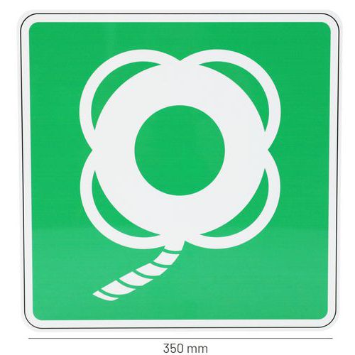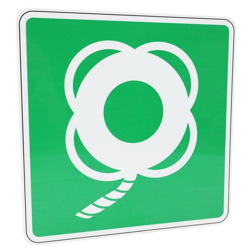| Produktname | Fluchtwegschild Rettungsring mit Leine, Aluminium - Manutan Expert, Selbstklebend: nein, Starr: ja |