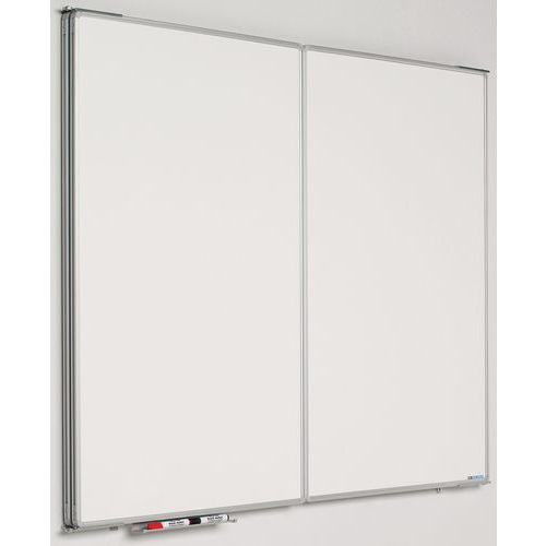 Whiteboard mit 5 beschreibbaren Vorderseiten aus emailliertem Stahl in Weiß Zusätzliche Flügel zur Erweiterung der beschreibbaren Fläche Magnetisch und trocken abwischbar Die mittlere Tafel wird durch eine verzinkte Stahlplatte an der Rückwand zusätzlich verstärkt Die Tafel verfügt ebenfalls über eine Rinne zum Ablegen von Zubehör Am äußeren Rand der Flügeltafeln befinden sich Magnete für den Fall, dass sich die Flügel unerwarteter Weise nicht öffnen oder schließen lassen Dimensioni aperto: 90 x 240 e 120 x 400 cm.