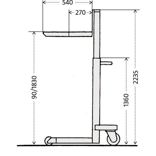 | Produktname | Gabelstapler mit doppeltem Teleskopmast, Max. Belastung: 250 kg, Max. Hubhöhe: 1830 mm, Gesamtlänge: 1000 mm |