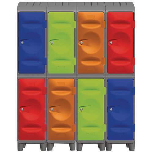 Hinweis: Der Garderobenschrank wird ohne Vorhängeschloss geliefert, bitte separat bestellen (Bügel des Vorhängeschlosses mit ⌀ min. 5 mm, max. 7,5 mm) Sicherheitshinweise: das Möbelstück auf ebenem Untergrund aufstellen, an einer Mauer oder einer Wand mit einer geeigneten Befestigung anbringen, die maximal zulässige Traglast nicht überschreiten und auf eine gleichmäßige Verteilung der Last achten Idee: Wenn Sie 2 Garderobenschrankaufsätze übereinander kombinieren, erhalten Sie einen höheren Aufbau. Sie können auch verschiedene Farben variieren!