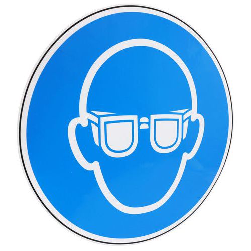 - Mit diesem Schild weisen Sie auf die Pflicht hin, eine Schutzbrille mit getönten Gläsern zu tragen