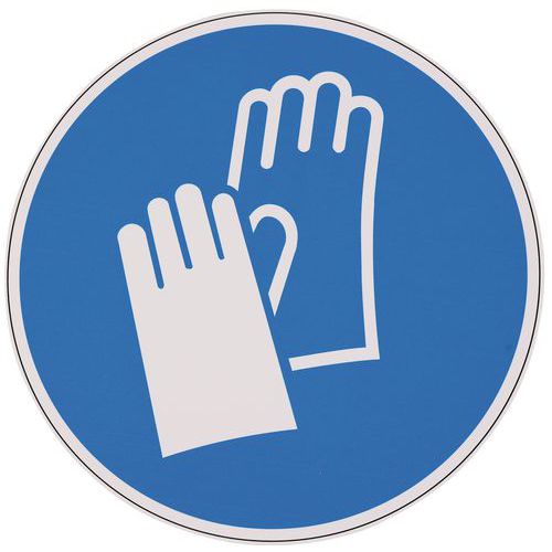 - Gebotsschild in Bezug auf die Pflicht, Schutzhandschuhe zu tragen, sodass optimale Sicherheit herrscht