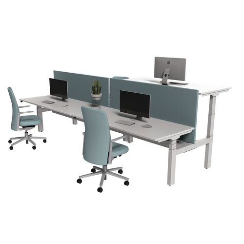 Gerader elektrischer Schreibtisch Bench mit H-Untergestell. Bureau Bench für sitzende und stehende Arbeitshaltung, ideal für Gruppenarbeitsbereiche.
