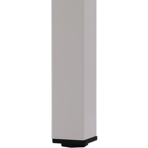 Gerader Schreibtisch mit melaminbeschichteter Platte, Stärke 25 mm, und 2 mm starken ABS-Kanten. 2 Verstärkungstraversen aus Metallrohr, 40 x 20 mm. Konstruktion aus geraden Metallfüßen 40 x 40 mm mit Kunststofffüßen zum Nivellieren. Die Platte ist für ein einfaches Kabelmanagement mit einer Kabeldurchführung mit Klappe versehen.