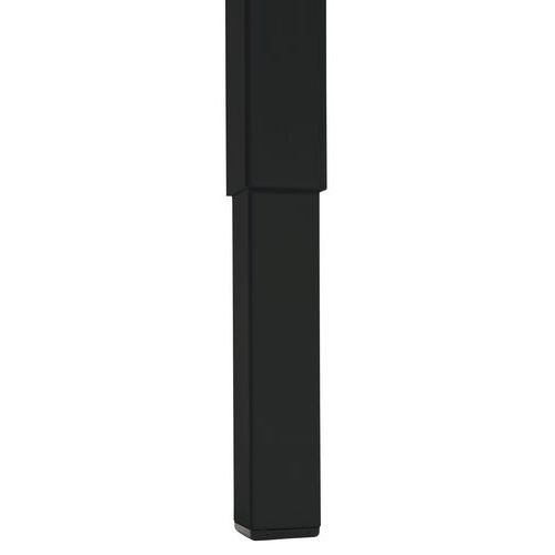 Gerader, auf Fußhöhe höhenverstellbarer Schreibtisch. Melaminbeschichtete Platte, Stärke 25 mm, mit 2 mm starken ABS-Kanten. 2 Verstärkungstraversen aus Metallrohr, 40 x 20 mm. Konstruktion aus geraden Metallfüßen 40 x 40 mm mit Kunststoff-Stellfüßen zum Nivellieren. Die Platte ist für ein einfaches Kabelmanagement mit einer Kabeldurchführung mit Klappe versehen.