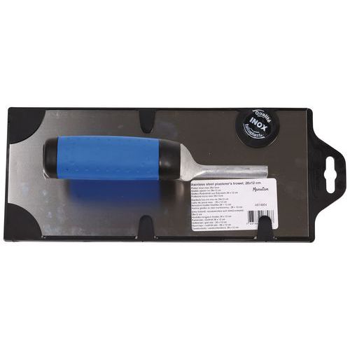 - Glättekelle, Edelstahl 28 x 12 cm mit ergonomischem Zwei-Komponenten-Griff.