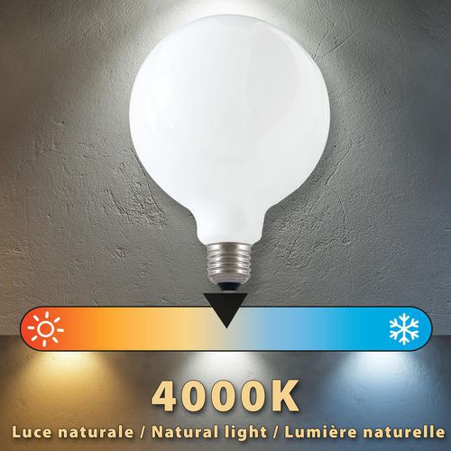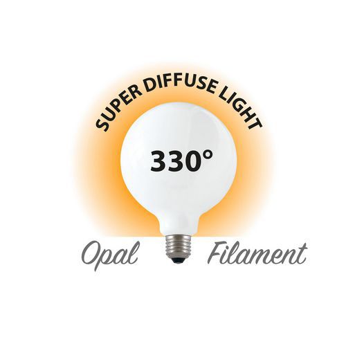 Glühbirne mit LED-Leuchtfäden Opal 18 W Kugel G125 E27: Mit ihrer Lebensdauer von 20.000 Stunden (mehr als der Marktstandard) kann die Glühbirne mehr als 15 Jahre halten (bei einer täglichen Verwendung von 3 Stunden)