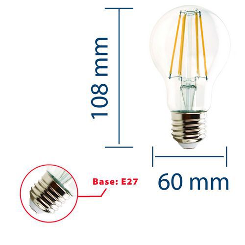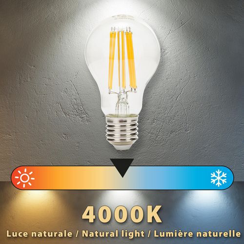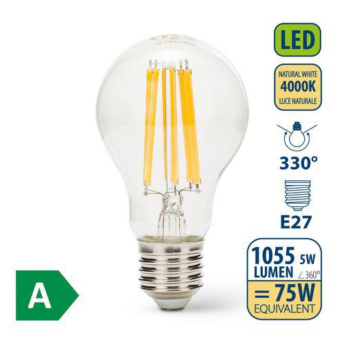 Glühbirne mit LED-Leuchtfäden, Standard A60 - Velamp, Lichtstrom: 1055 lm, Typ Fassung: E27