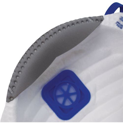 La valvola aiuta a limitare la formazione di condensa dovuta all'appannamento sugli occhiali. Filtro classe P2= filtrazione di media efficienza contro polveri tossiche (legno, resina poliestere, ecc.), fumi metallici (fumi di saldatura), nebbie oleose.